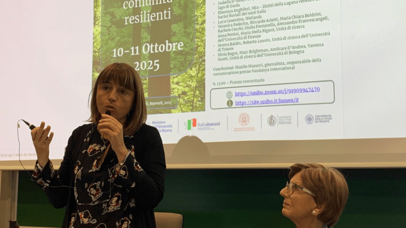 Il convegno finale Lumen, che ha riunito studenti, ricercatori e comunità locali per riflettere su approccio ecosistemico, resilienza territoriale e giustizia ecologica, è stato avviato con la sessione “L’energia alla base della vita”, nella quale esperti ricercatori hanno illustrato concetti di energia ed emergia e modelli scientifici per comprendere e tutelare gli ecosistemi come sistemi complessi. Nella sessione “Voci dal mondo”, attiviste internazionali hanno condiviso esperienze e pratiche di difesa dei diritti ambientali, ecologici e culturali in Ecuador e Senegal, sottolineando il ruolo delle comunità locali e delle donne nello sviluppo sostenibile. La conferenza ha poi visto la restituzione partecipata dei risultati di progetto, con interventi delle unità di ricerca, delle associazioni e dei rappresentanti della società civile coinvolti durante i due anni di lavoro. L’iniziativa si è aperta con una passeggiata ecologica guidata dai cittadini nei luoghi del Quartiere Romiti di Forlì maggiormente colpiti dalle inondazioni del 2023, per osservare e riflettere sui luoghi del disastro ambientale. Durante i successivi interventi, sono stati condivisi strumenti e pratiche per la tutela dei bacini fluviali, la conservazione delle lagune e la valorizzazione dei diritti della Natura, evidenziando il potenziale dell’approccio ecosistemico nella costruzione di territori resilienti.